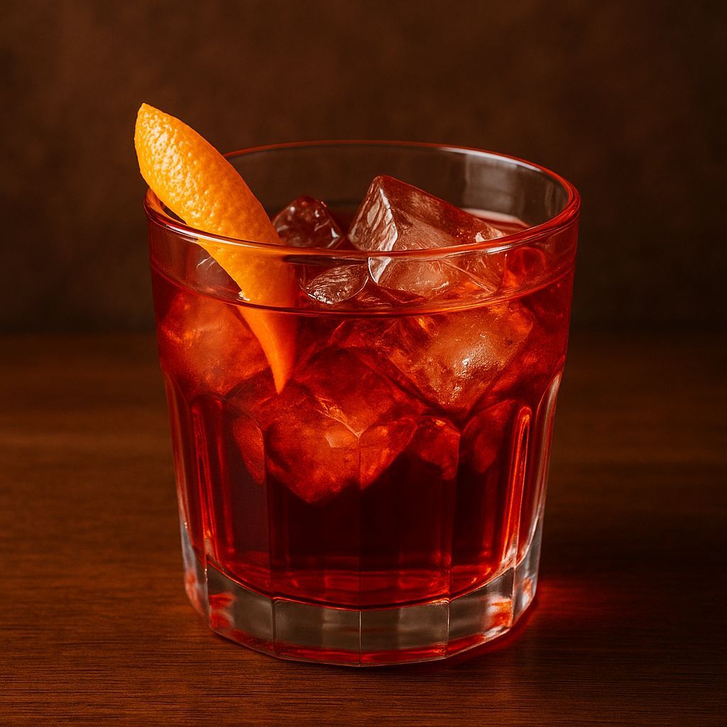 Klasik italyan dokunuşu: Cin, kırmızı vermut ve Campari'nin dengeli buluşması. Yoğun aromalı, hafif acımsı